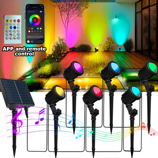 RGB Solar Spot Lights Outdoor Color Changing Landscape Lighting IP65 Waterproof APP and Remote Control Spotlights Garden Pathway